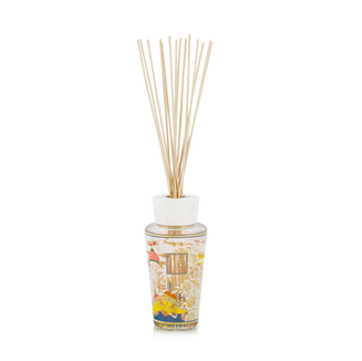 The screen-printed decoration on the glass is inspired by engravings from the 19th century, where little butterflies and hot-air balloons are placed on the glass in an imaginary flight, subliminally transporting you into the fantastical world of Tomorrowland. The black and 24-carat gold design makes this new edition a must-have decorative item.