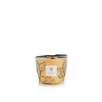 Featuring a design of yellow baobabs on a grey background, was created in Italy using a glass sublimation method. The design is printed with natural pigments and then delicately placed around the glass, which fuses to the material. The richness of the design then comes to life with the flame, subtly revealed via its transparency.